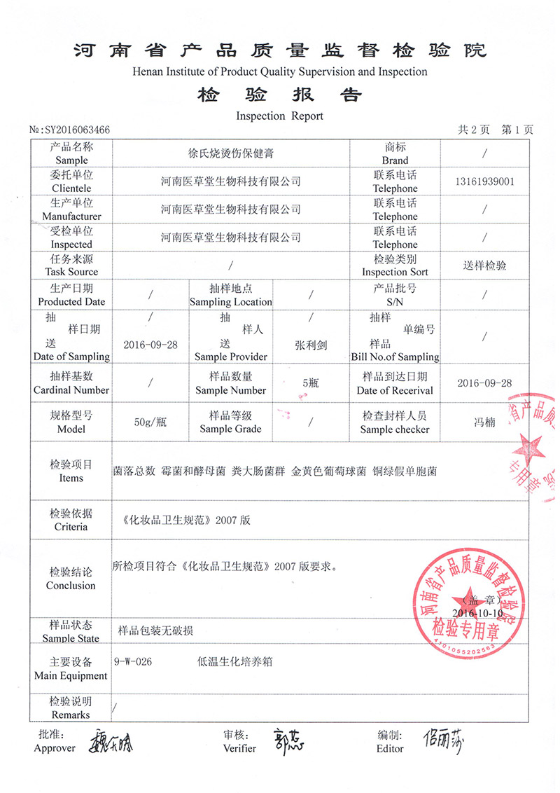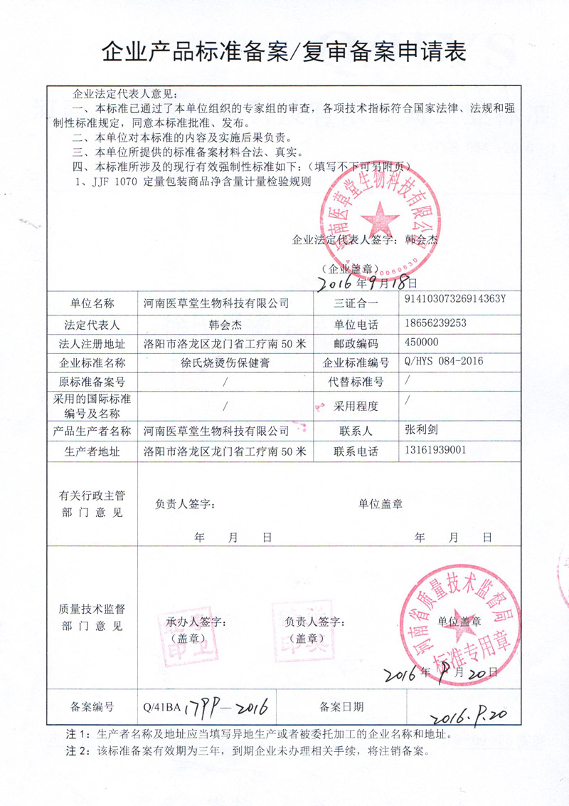 【批準文號】豫健證字[2015]第052號(更)